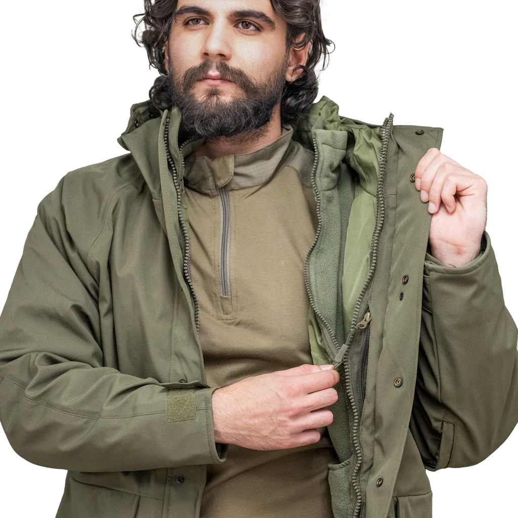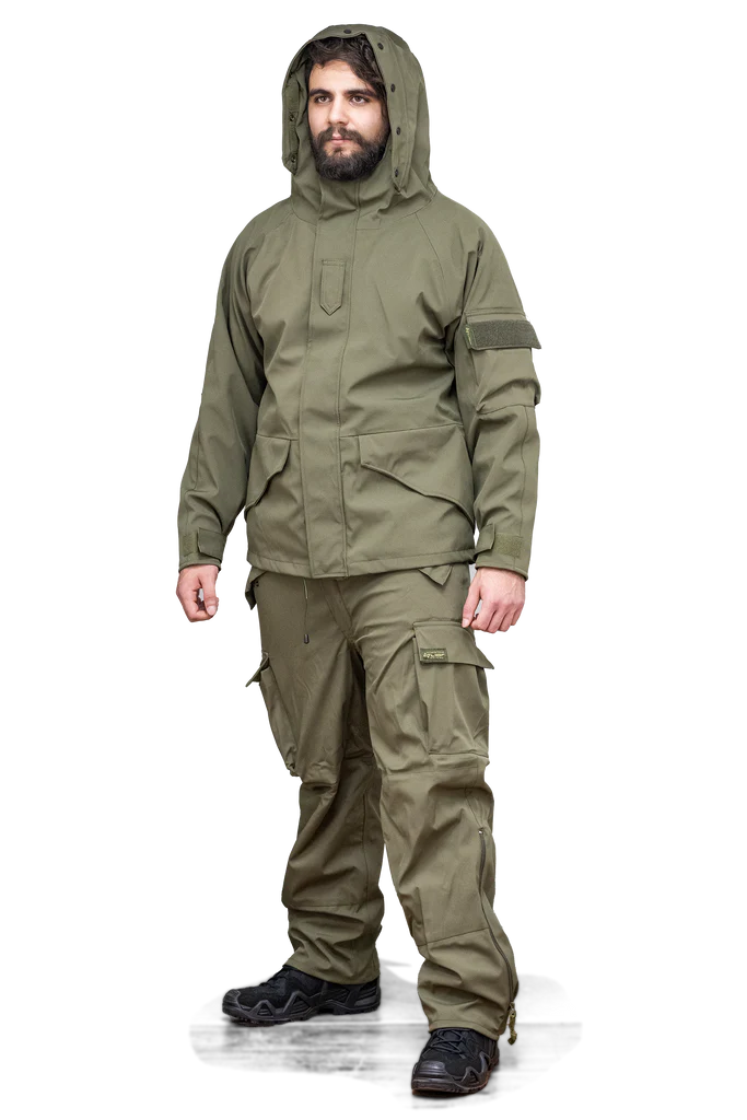 חליפת סערה מבד גורטקס, חסינה למים, המיועדת לתנאי שטח בינוניים עד קיצוניים.