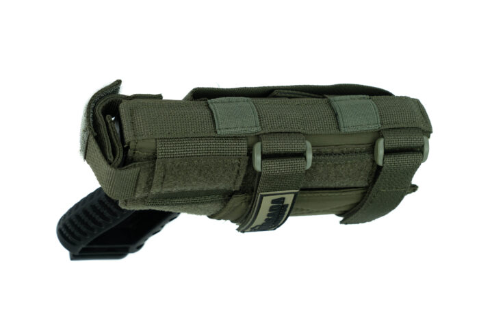 נרתיק האקדח כולל מערכת רצועות וסגירות מתקדמות המאפשרות התאמה אישית וקיבוע יציב על הגוף או על הווסט. מבנה הנרתיק מאפשר התאמה למגוון גדלי אקדחים, תוך שמירה על אחיזה בטוחה ונגישות גבוהה לשליפה מהירה בעת הצורך.