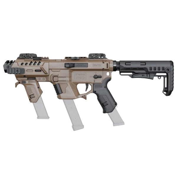מביאה את השילוב האידיאלי בין הניידות, הדיוק והארגונומיה של פלטפורמת ה-M4 לבין האמינות, הקומפקטיות והשליטה של אקדח. הערכה הופכת את האקדח שלך למערכת טקטית מתקדמת ורב-שימושית, עם התקנה מהירה ופשוטה – ללא צורך בכלים מיוחדים וללא שינויים קבועים בנשק.